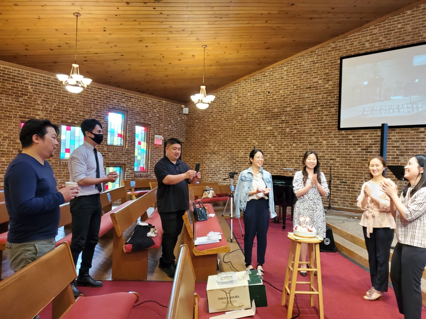 지난 주일 주일 예배에 참석하신 분들 모습을 사진에 담아 보았습니다. 지난 주에는 1부 예배에 참석하시는 분들이 많으셔서 1부 예배 참석자 분들의 사진이 많게 되었네요. 다들 건강한 모습으로 함께 예배 드릴 수 있어서 감사합니다! (찬양팀 녹화후 한진실 집사님 생일을 함께 축하하는 모습도 있습니다. 집사님, 생일을 축하 드리며, 수고하신 찬양팀에게 다시 한번 감사를 드립니다!)