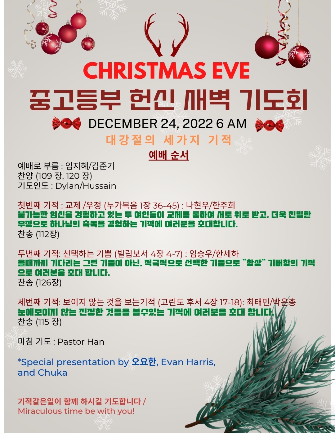 중고등부 크리스마스 이브 헌신 새벽 예배