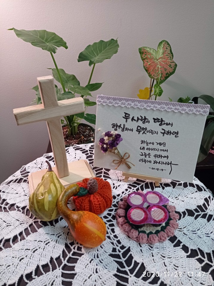 추수감사주일 가정제단 (2020/11/22) December 11, 2020Gallery_AlbumStaff 온라인으로 드려졌던 지난 추수감사주일 예배 가정 제단의 모습들입니다. 정성을 다한 손길을 통해서 드려진 귀한 감사의 예배를 주님께서 기뻐 받아 주셨으리라 믿습니다. 할렐루야!