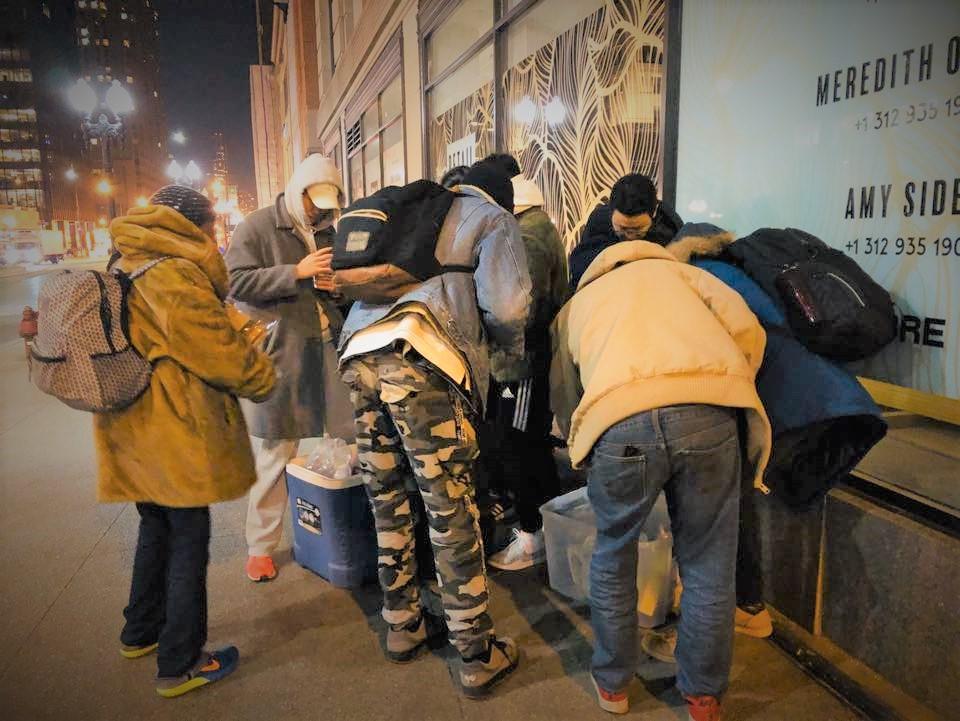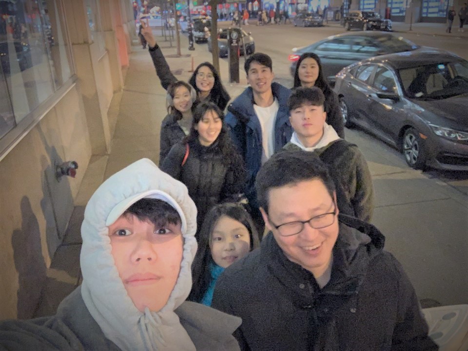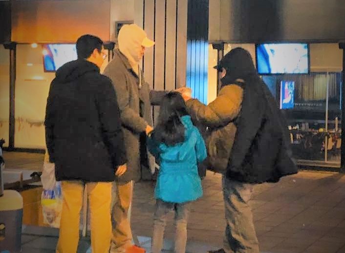 어제 성탄주일 예배를 마치고 EM 교우 19명이 (피터 집사님 딸 사라 포함) 다운타운을 향했습니다.  핫초코, 커피, 초코파이, 스카프, 양말, 위생팩등을 싸 들고 오후 4시경부터 밤 9시까지 다운타운에 있는 노숙자들을 찾아 다니며 준비해간 따듯한 차와 구호품들을 나누며 그리스도의 사랑을 전했습니다.  성탄주일 예수님의 사랑을 몸소 실천하느라 수고한 EM 교우들에게 감사하며, 이일을 위해서 귀한 후원을 해 주신 많은 분들께 또한 감사를 드립니다.  무엇보다도 이런일을 감당할 수 있도록 성탄의 기쁨을 허락해 주신 하나님께 감사와 영광을 드립니다!  할렐루야!