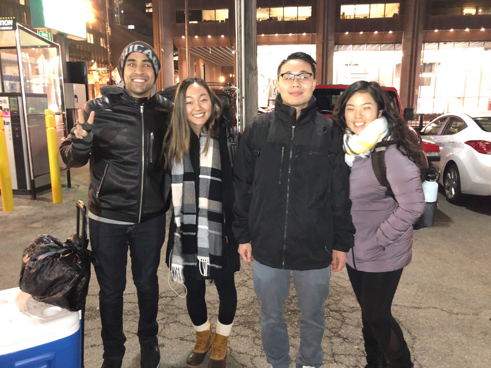 19 members of EM went to downtown in the afternoon of Christmas Sunday, to pass out hot cocoa, coffee, choco pie, scarf, sox and health kit to homeless people.  Their ministry went on from about 4 PM till 9 PM at night.  Thank you, EM members, for your service and to all the members of Salem for supporting this ministry!  Moreover, we give thanks to God for the Christmas joy which enables every act of love!